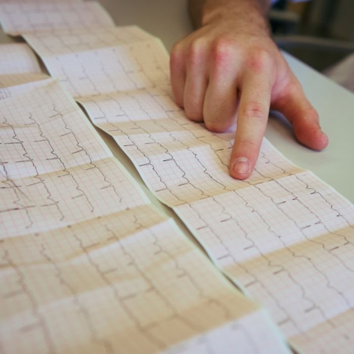 Electrical tracing of the heart to detect rhythm abnormalities.